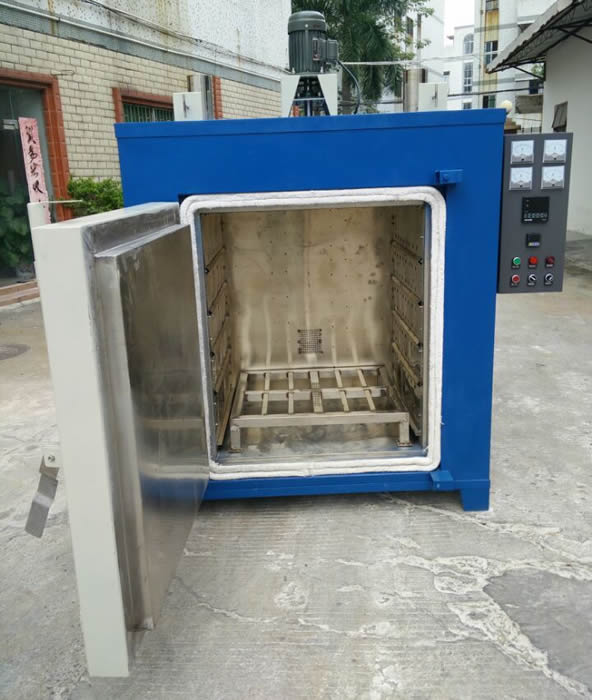 內板采用304不銹鋼材料,外部冷板噴塑高溫烘烤而成,塑粉耐高溫耐腐蝕,顏色長期不變。采用最新系列國內名牌宇電溫控表,精準控溫,各電器均采用國內名牌。內部空間600*800*1000,頂部750W離心風機帶動不銹鋼風輪攪拌風循環(huán),保證了內部溫度均勻性,內部溫度偏差不超過5度。后面加防爆門。三相可控硅移相觸發(fā),使電流不會沖擊過大。歡迎廣大客戶來電咨詢,內部空間均可按客戶要求生產。